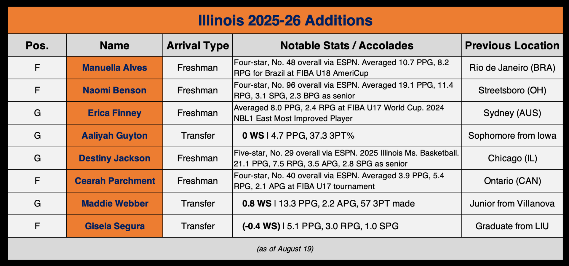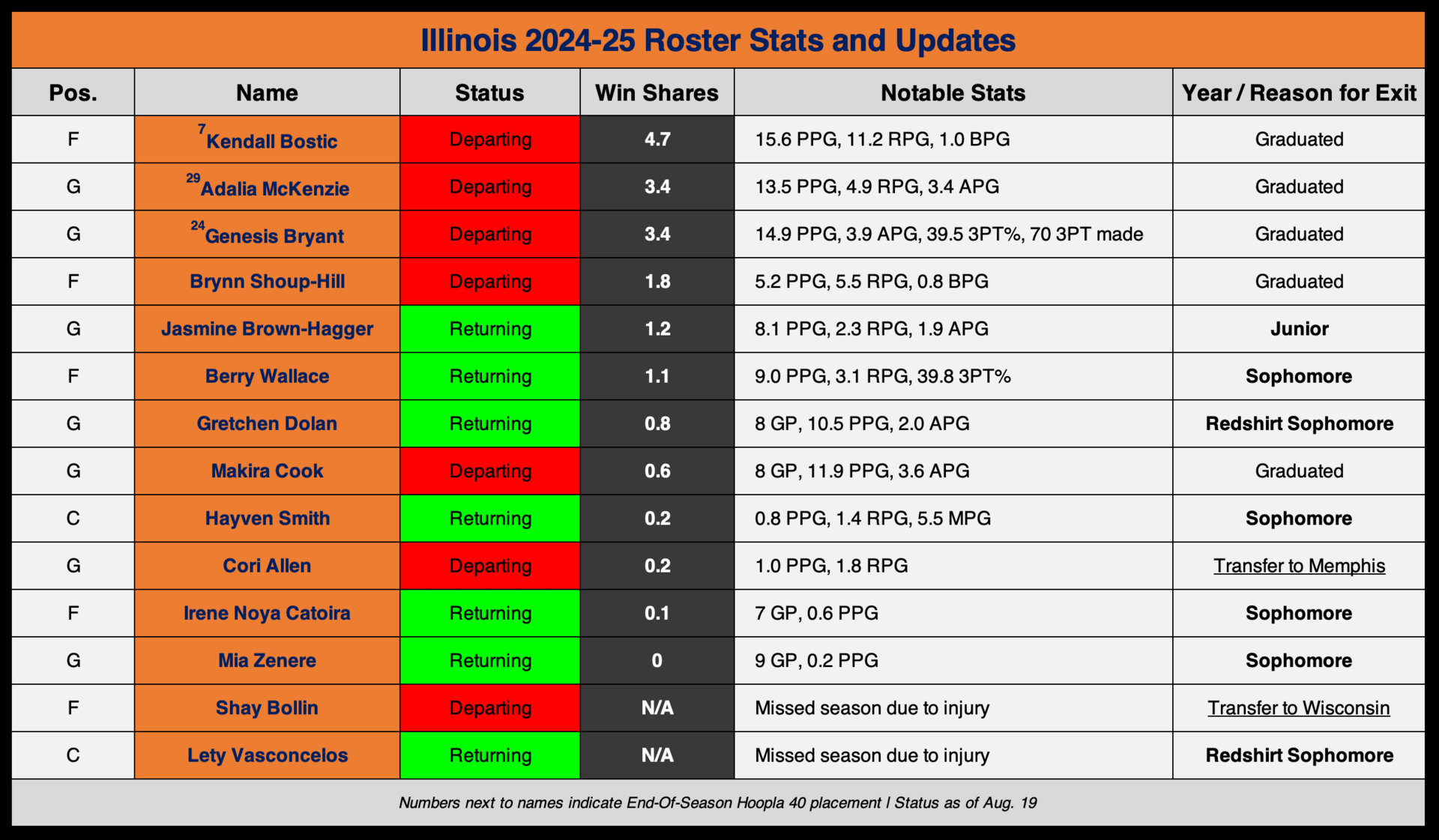 Here's last year’s Illinois roster, sorted by Her Hoop Stats win shares: