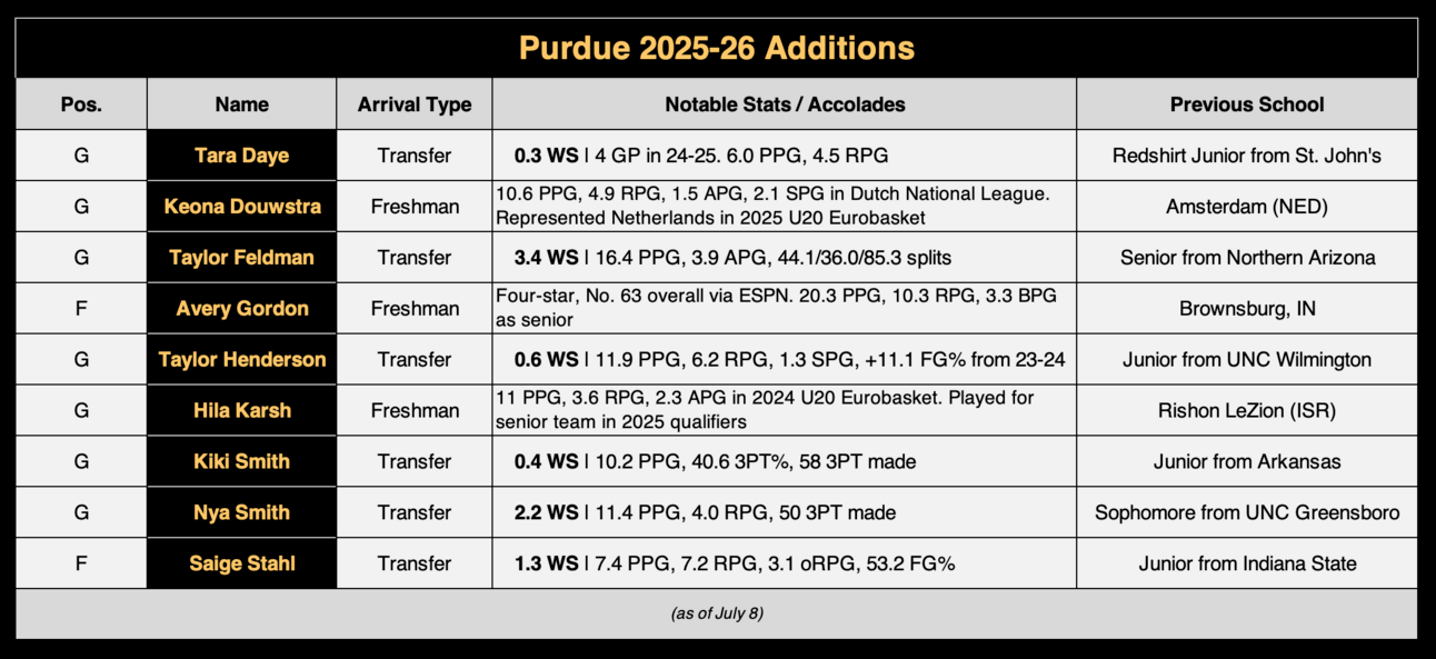 That said, there is a whole lot to like with the new faces entering the fray, and it gives Purdue a chance to build a really intriguing core group to move forward with. Feldman and Kiki Smith feel like the type of transfers that should start from Day One, and Layden-Zay is a key vet that immediately adds spacing to the lineup.