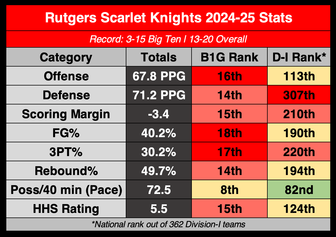 Overall, Her Hoop Stats rated Rutgers 8.1 points better overall as a team compared to last year, a sign of incremental progress being made despite another record that left something to be desired.