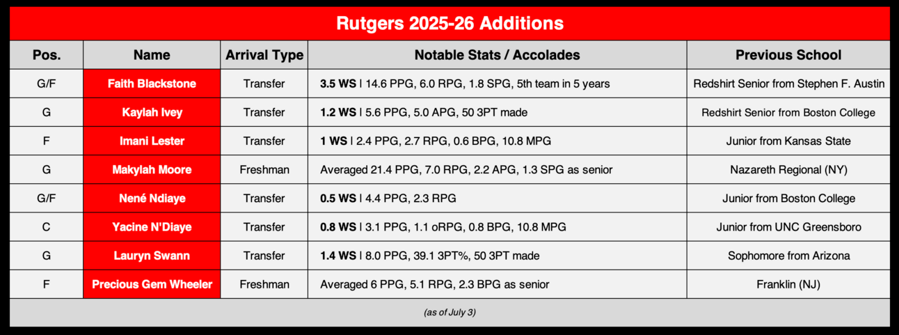 Six transfers and a pair of freshmen are coming to Piscataway, with Faith Blackstone being the major get from the bunch.