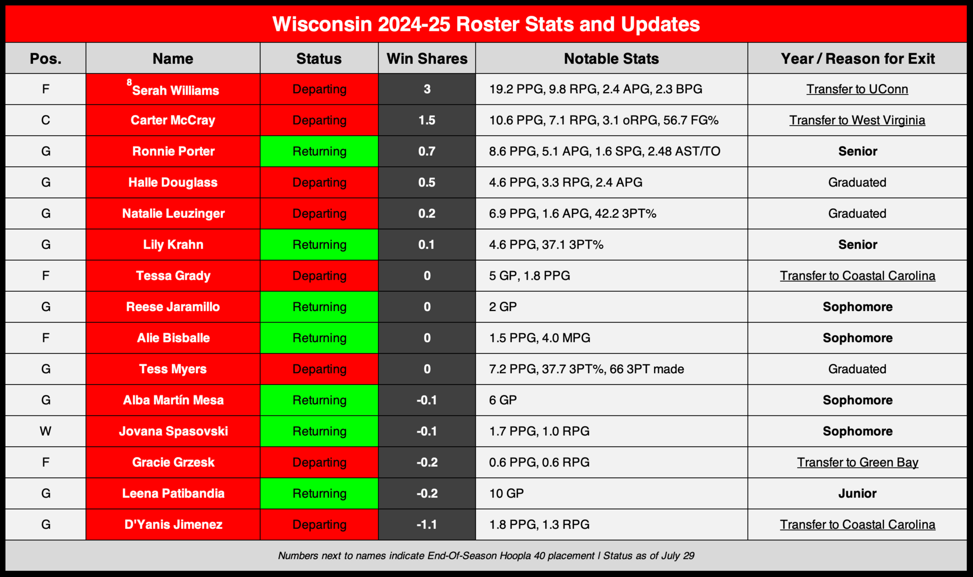 Here's last year’s Wisconsin roster, sorted by Her Hoop Stats win shares: